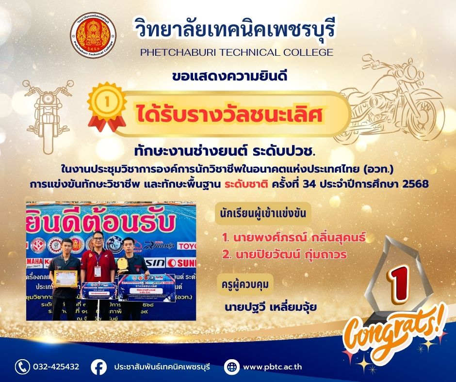 ข่าวประชาสัมพันธ์ วิทยาลัยเทคนิคเพชรบุรีขอแสดงความยินดีแก่คณะผู้บริหาร ครู และบุคลากรทางการศึกษา ที่ได้รับรางวัลยกย่องเชิดชูเกียรติ รางวัลครูดีศรีเมืองเพชร รางวัลผู้บริหารสถานศึกษาดีเด่น ครูดีเด่นด้านการสอน ครูดีเด่นด้านคุณธรรม จริยธรรม ครูดีเด่นด้านสร้างชื่อเสียงให้กับสถานศึกษา ในงานวันครู ประจำปีพุทธศักราช 2569 Bypbtc@Digitalcenter 16 มกราคม 20262 เมษายน 2026