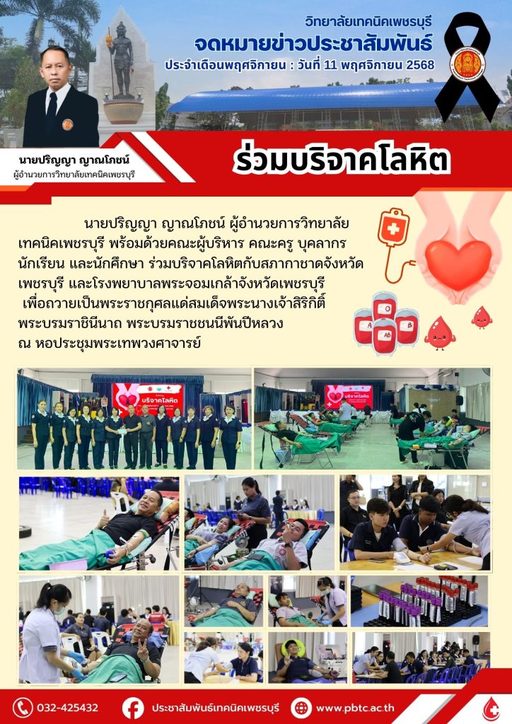 ข่าวประชาสัมพันธ์ ทยาลัยเทคนิคเพชรบุรี จัดพิธีมอบประกาศนียบัตรผู้สำเร็จการศึกษา ประจำปี 2568 Bypbtc@Digitalcenter 27 มีนาคม 20262 เมษายน 2026 วันศุกร์ที่ 27 มีน…