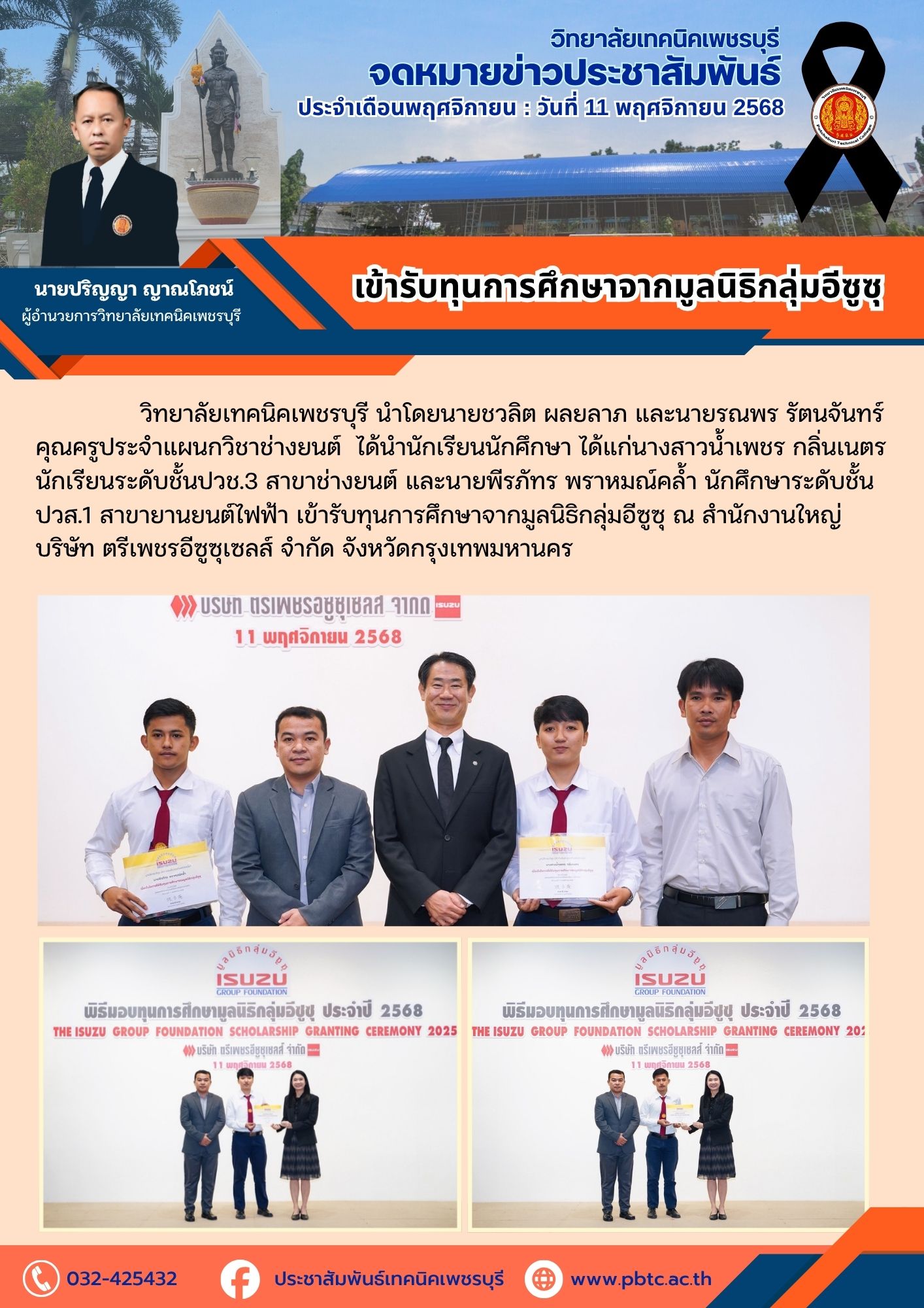 ข่าวประชาสัมพันธ์ ร่วมส่งกำลังใจให้ คณะครู บุคลากรทางการศึกษา ที่ออกเดินทางสู่จังหวัดสงขลา จุดที่ 36 ม.1 ต.เกาะยอ อ.เมือง จ.สงขลา Fix it Center ภายใต้สังกัดสำนักงานอาชีวศึกษาจังหวัดเพชรบุรี ช่วยเหลือผู้ปะสบภัยน้ำท่วม Bypbtc@Digitalcenter 30 พฤศจิกายน 20251 เมษายน 2026