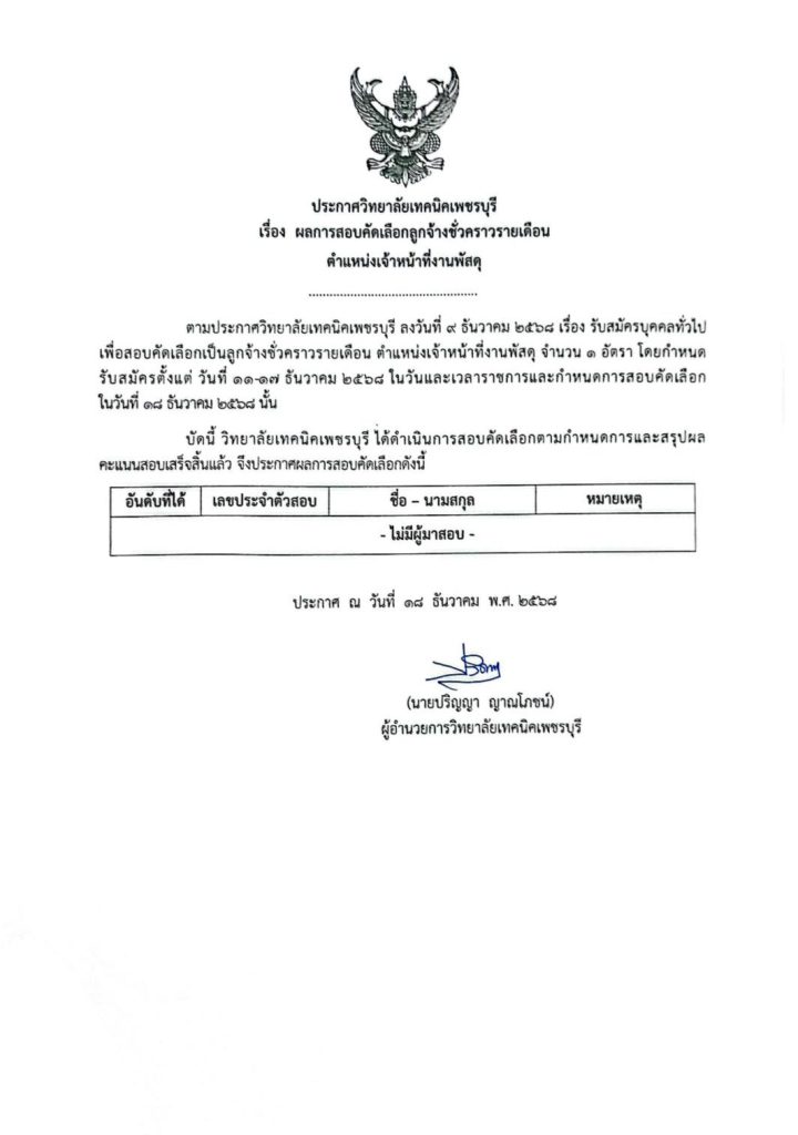 ข่าวจัดซื้อจัดจ้าง ประกาศ รายชื่อผู้มีสิทธิ์สอบคัดเลือกลูกจ้างชั่วคราวรายเดือน ตำแหน่งงานเจ้าหน้าที่งานพัสดุ Bypbtc@Digitalcenter 17 ธันวาคม 20251 เมษายน 2026