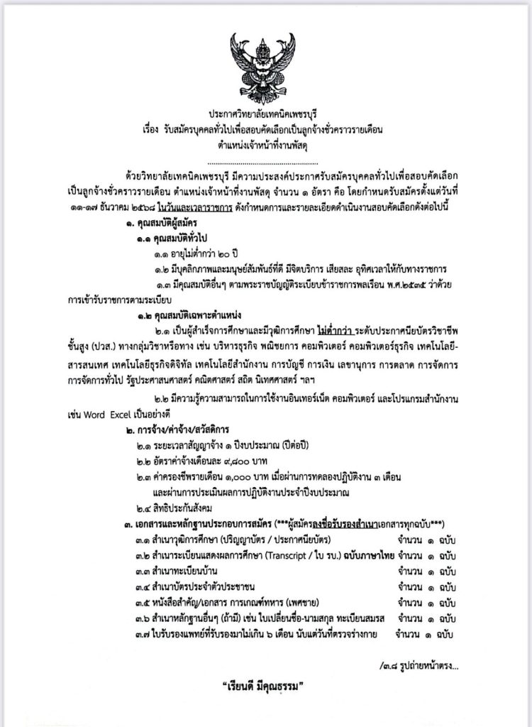 ข่าวจัดซื้อจัดจ้าง ประกาศ รายชื่อผู้มีสิทธิ์สอบคัดเลือกลูกจ้างชั่วคราวรายเดือน ตำแหน่งงานเจ้าหน้าที่งานพัสดุ Bypbtc@Digitalcenter 17 ธันวาคม 20251 เมษายน 2026