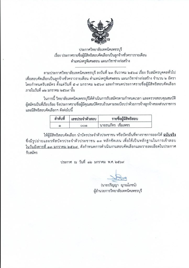 ข่าวจัดซื้อจัดจ้าง ประกาศผล การสอบคัดเลือกตำแหน่งครูพิเศษสอน แผนกวิชาช่างก่อสร้าง Bypbtc@Digitalcenter 15 มกราคม 20262 เมษายน 2026
