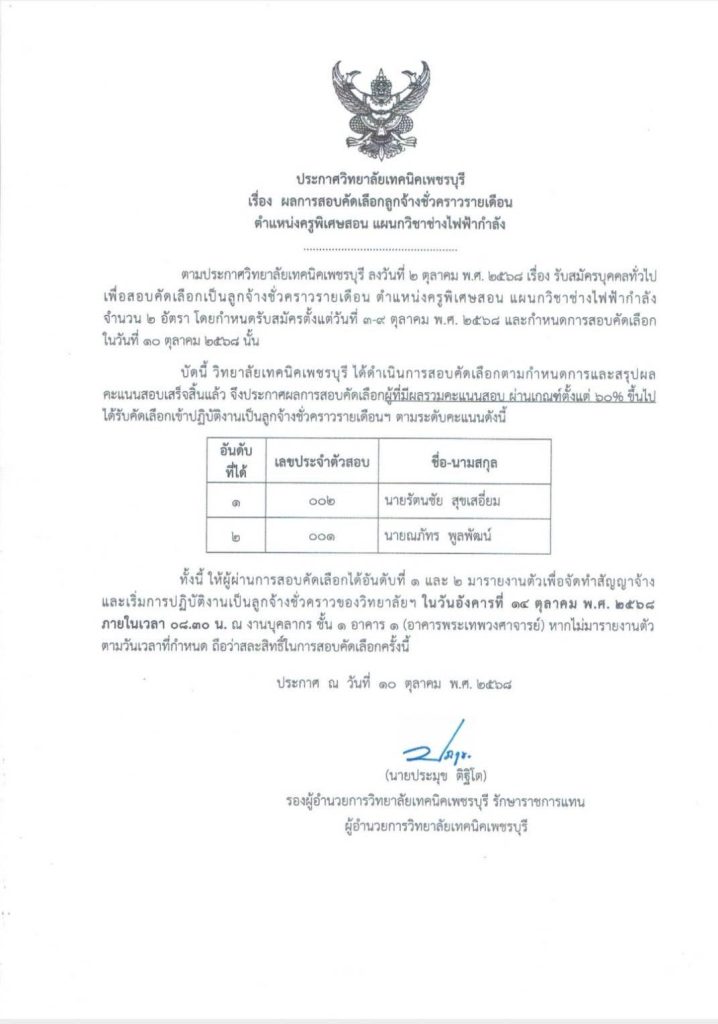 ข่าวจัดซื้อจัดจ้าง ประกาศผล การสอบคัดเลือกตำแหน่งครูพิเศษสอน แผนกวิชาช่างก่อสร้าง Bypbtc@Digitalcenter 15 มกราคม 20262 เมษายน 2026