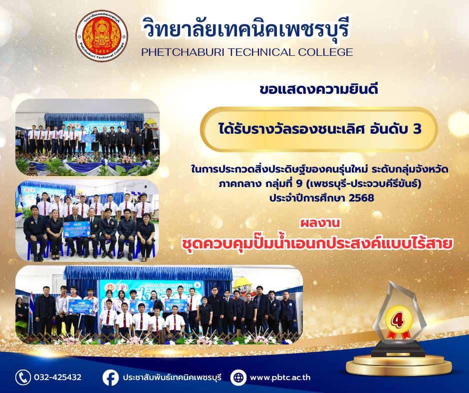ข่าวประชาสัมพันธ์ 🏅🎉👏ขอแสดงความยินดีกับรักเรียนนักศึกษาที่ได้รับ ชมเชย ระดับเหรียญเงิน ในการประกวดผลงานสิ่งประดิษฐ์ของคนรุ่นใหม่ ระดับภาค ภาคกลาง ประจำปีการศึกษา 2568 Bypbtc@Digitalcenter 15 ธันวาคม 20251 เมษายน 2026 ขอแสดงความยินดีกับ…
