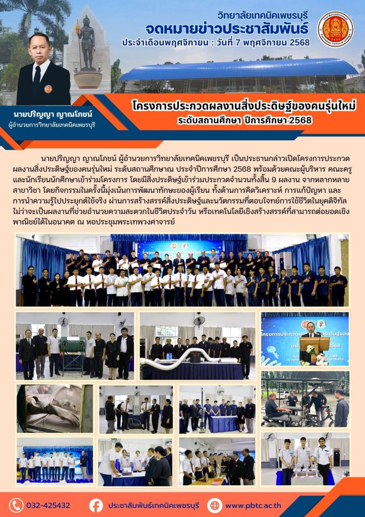 ข่าวประชาสัมพันธ์ วิทยาลัยเทคนิคเพชรบุรีขอแสดงความยินดีแก่คณะผู้บริหาร ครู และบุคลากรทางการศึกษา ที่ได้รับรางวัลยกย่องเชิดชูเกียรติ รางวัลครูดีศรีเมืองเพชร รางวัลผู้บริหารสถานศึกษาดีเด่น ครูดีเด่นด้านการสอน ครูดีเด่นด้านคุณธรรม จริยธรรม ครูดีเด่นด้านสร้างชื่อเสียงให้กับสถานศึกษา ในงานวันครู ประจำปีพุทธศักราช 2569 Bypbtc@Digitalcenter 16 มกราคม 20262 เมษายน 2026